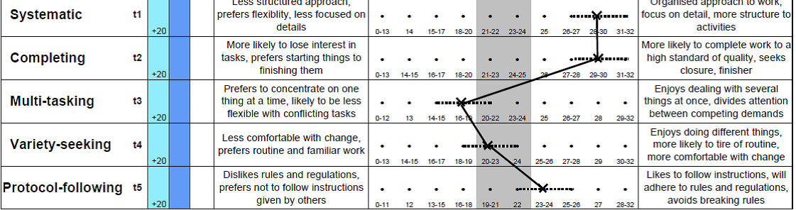 Tip: The behavioural description may come from anywhere on a scale’s continuum!