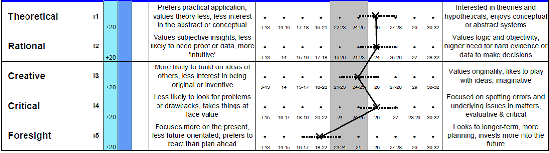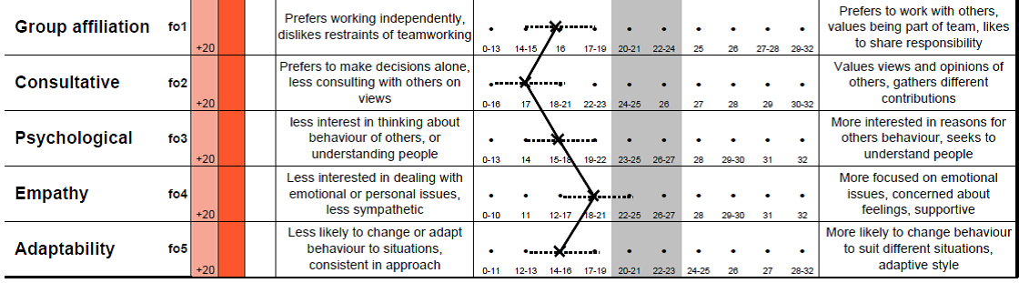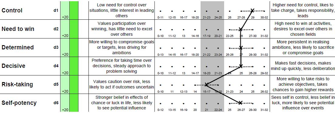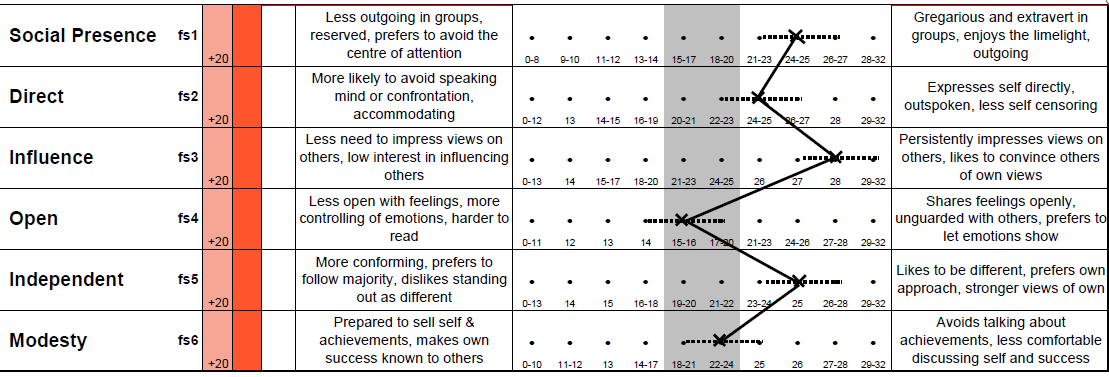 It is better to score in the middle band for the Self-assured scale so that one does not come across as being too confident or lacking in confidence.